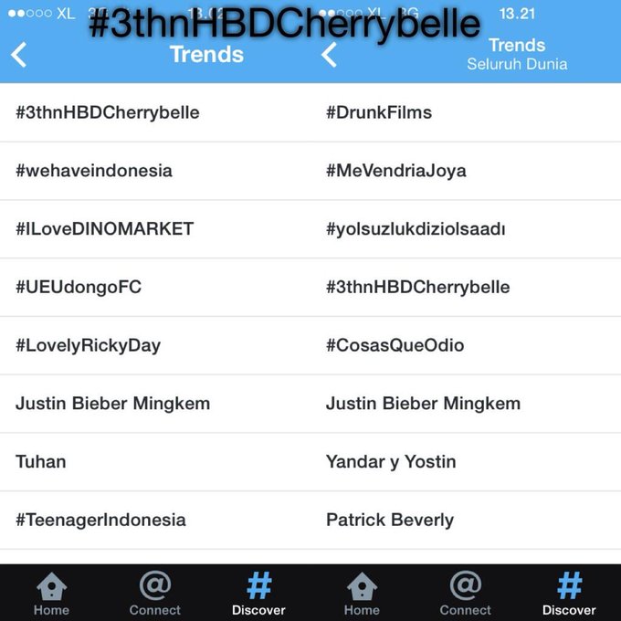 Sampai jam 12-pun, Hashtag tentang Anniversary Cherrybelle belum terlihat di trending topic. Karena terdapat perbedaan pendapat antar twibies. Sampai pada pukul 1 , Akhirnya Pak Irving Artemas mengatakan "pake hashtag #3thnHBDCherrybelle kalo mau masuk TTI" Serta dengan bantuan chibimovie ditwitter. Dan benar4 saja! Tidak sampai 1 jam bahkan hanya 15menit Hashtag tersebut sudah masuk Trending Topic Indonesia urutan Pertama & 10 Menit Kemudian Hashtag tersebut Menjadi Ternding Topic Dunia Urutan ke 4. Wow! Proud Of It. Thanks To kak Irving dan chibimovie^^